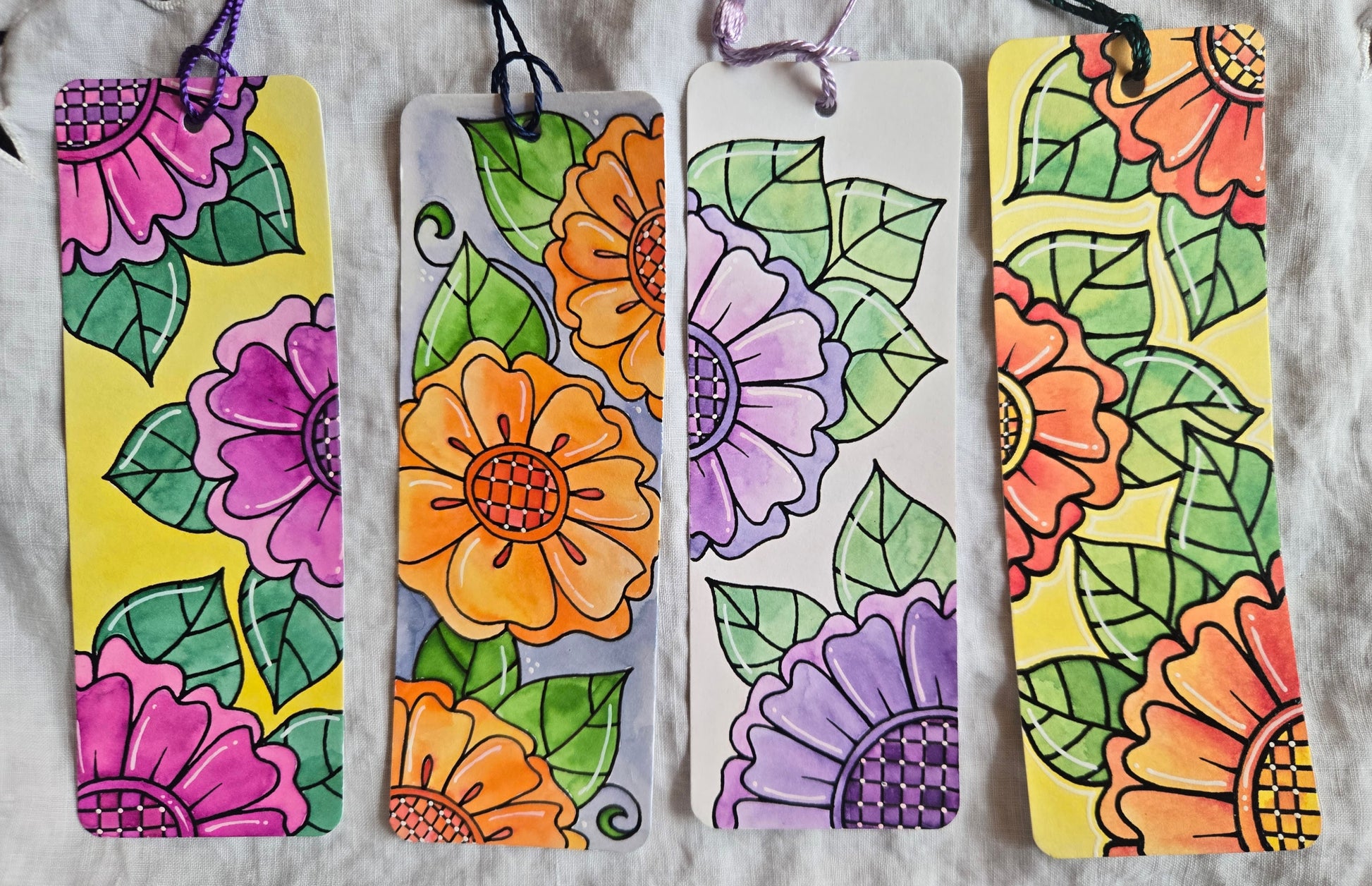 These are some of my favourite bookmarks that I've ever made. Each one is hand drawn with a glaze pen and then painted with watercolours. Add a lovely accessory when you give someone a book, or keep these all for yourself!